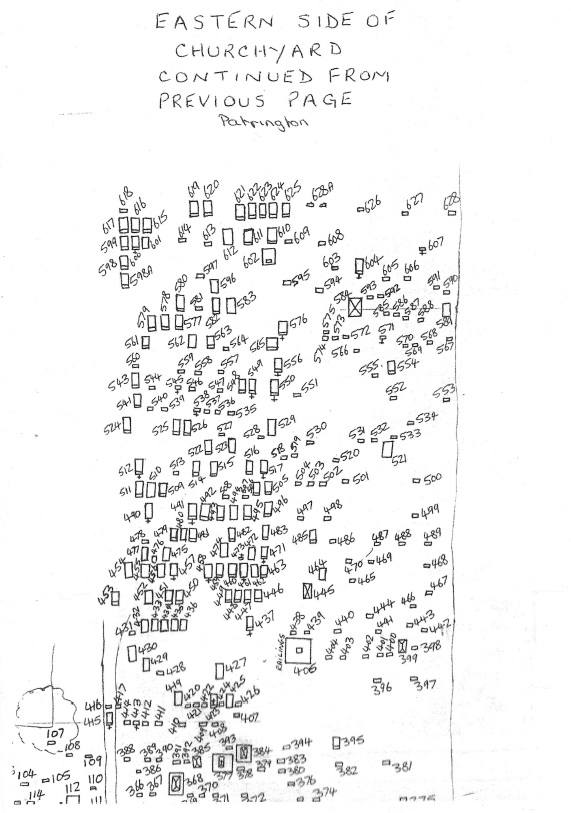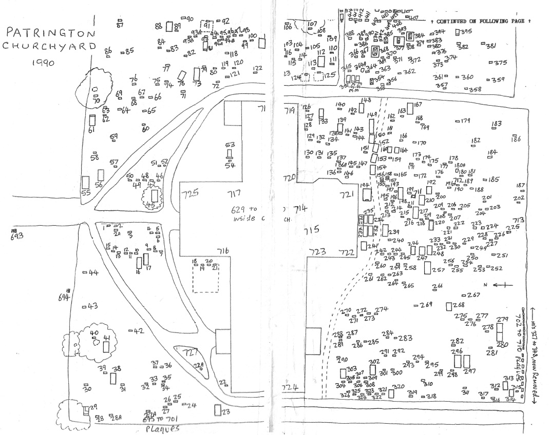 The churchyard is under the jurisdiction of the Patrington Parish Council, not St. Patrick's Church. Thus enquiries about locations of graves in the cemetery should be made to the Clerk to the Parish Council. There is however a map of the Monument loictaions and a list of the inscriptions with the Book of Remembrance in the chucrch. These are also available in Searchable PDF format and can be emailed on request.